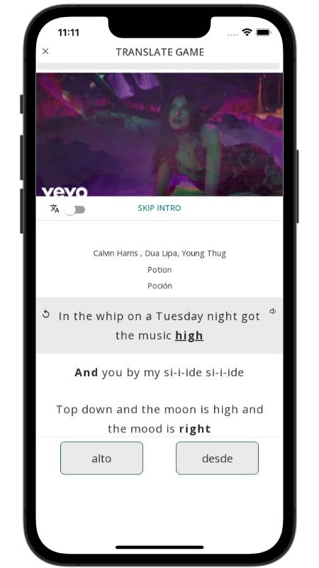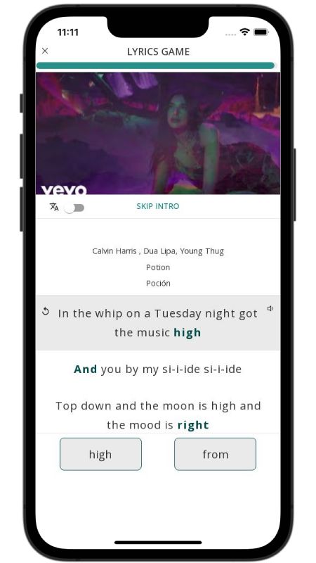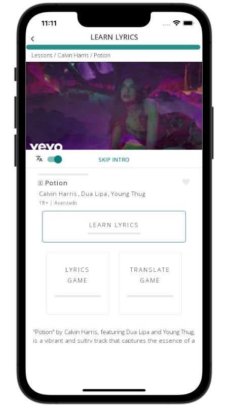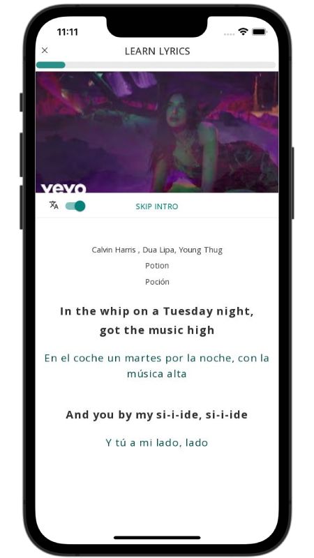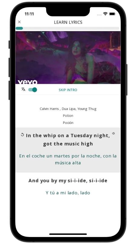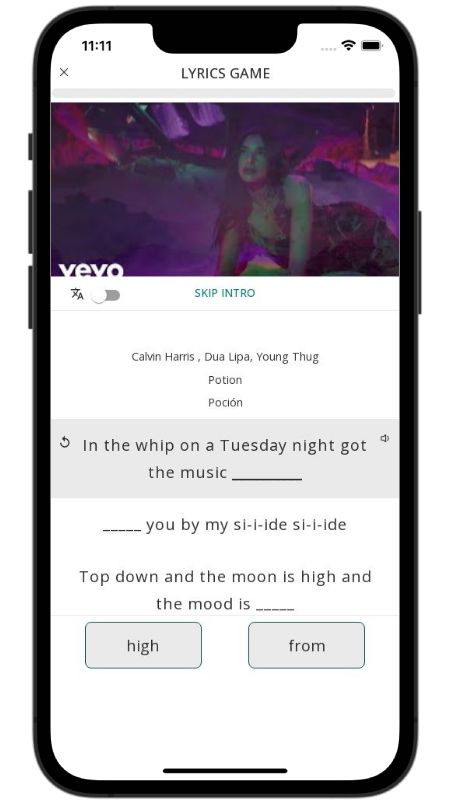 In addition to reading lyric translations, you can now learn English with music and lyrics from your favorite artists.