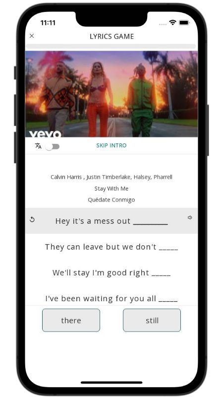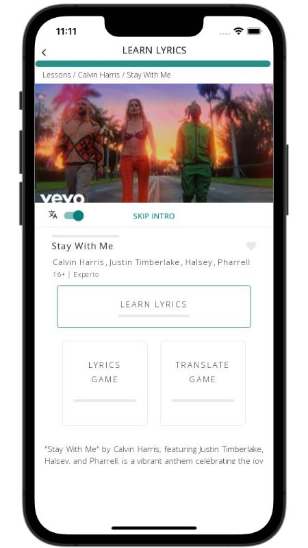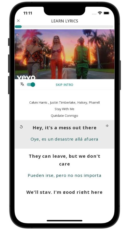 In addition to reading lyric translations, you can now learn English with music and lyrics from your favorite artists.