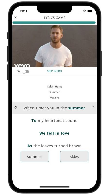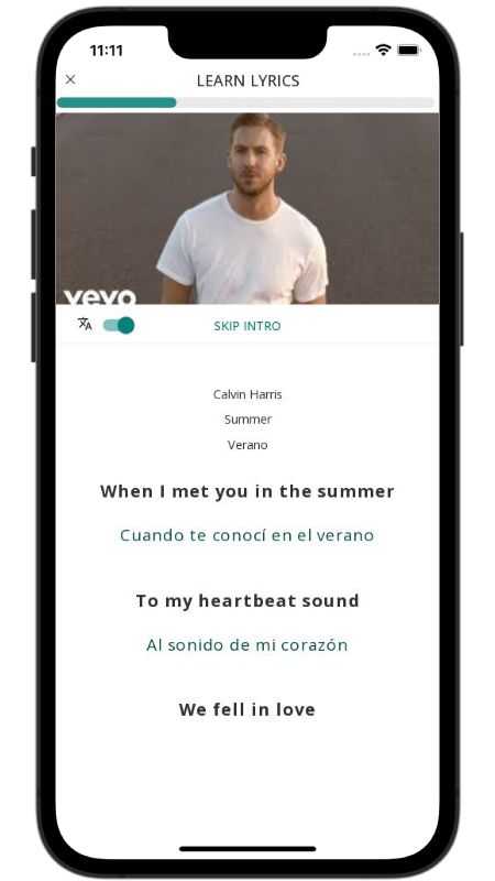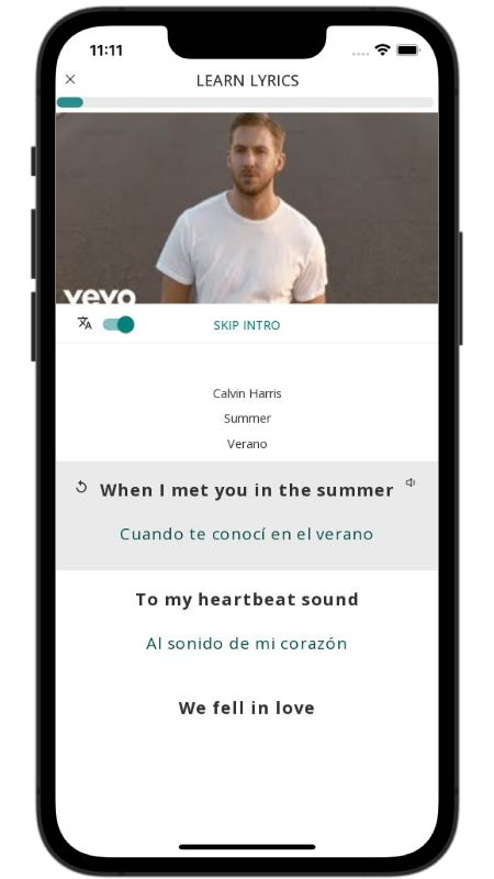 In addition to reading lyric translations, you can now learn English with music and lyrics from your favorite artists.