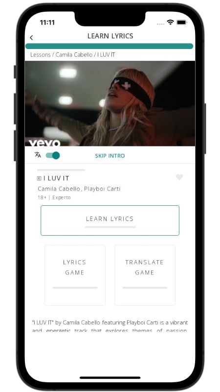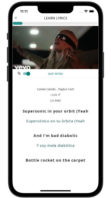 In addition to reading lyric translations, you can now learn English with music and lyrics from your favorite artists.