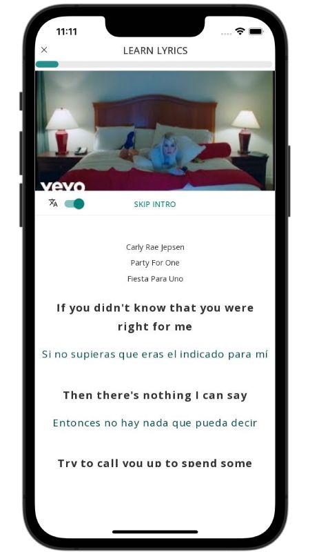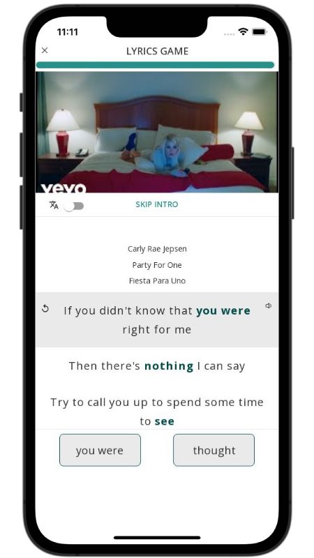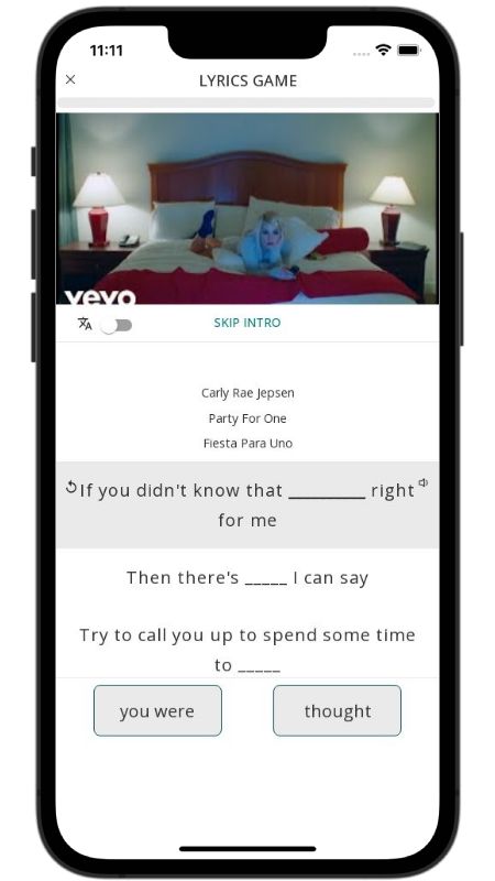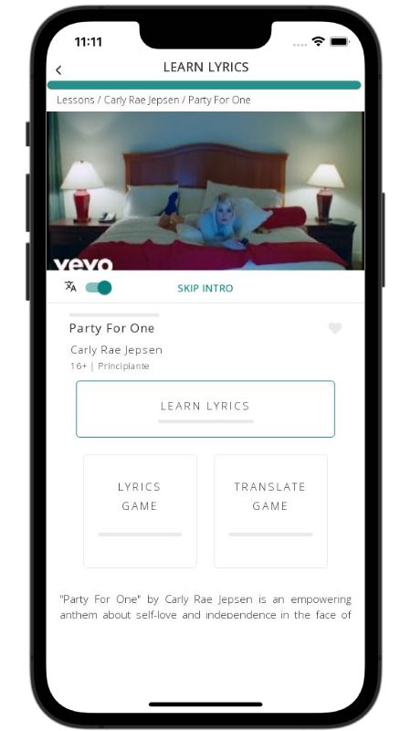 In addition to reading lyric translations, you can now learn English with music and lyrics from your favorite artists.