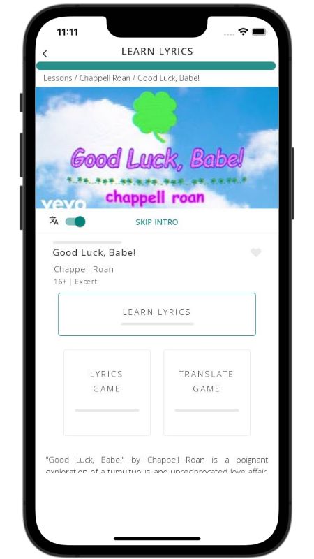 In addition to reading lyric translations, you can now learn English with music and lyrics from your favorite artists.