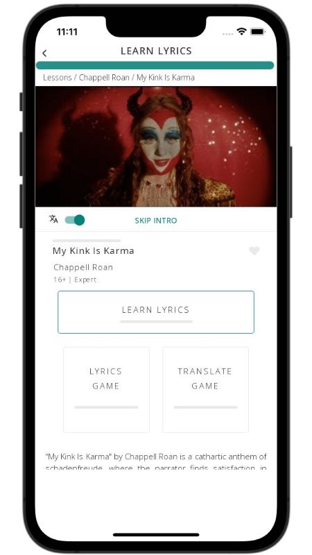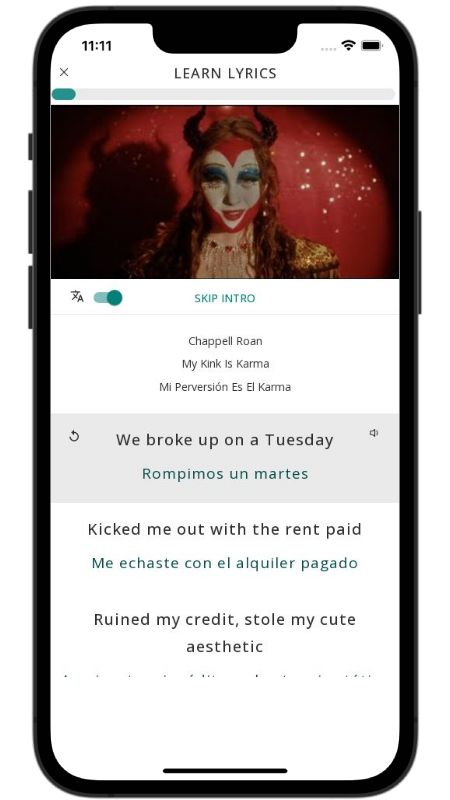In addition to reading lyric translations, you can now learn English with music and lyrics from your favorite artists.