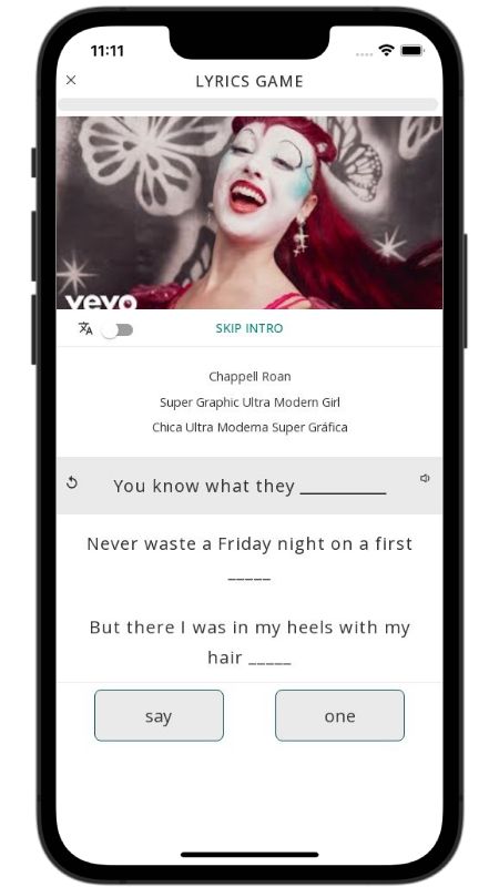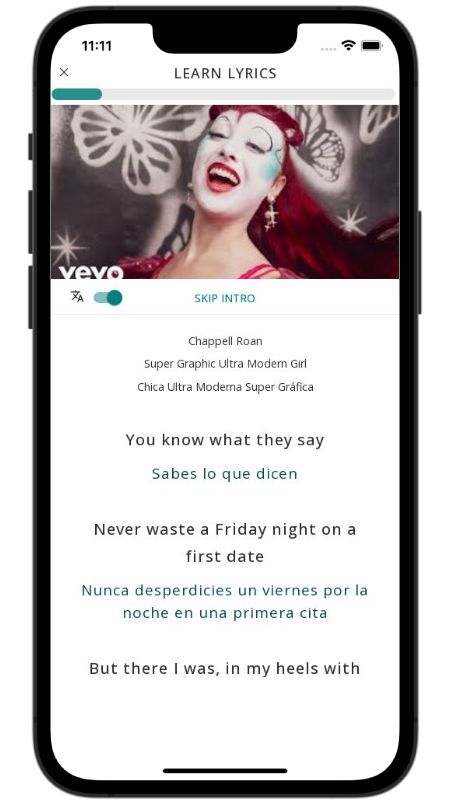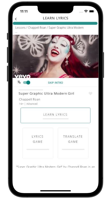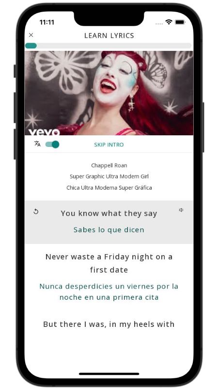 In addition to reading lyric translations, you can now learn English with music and lyrics from your favorite artists.