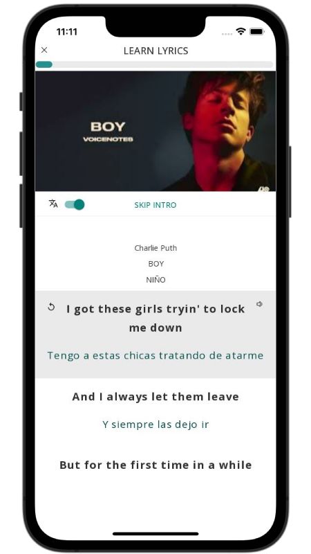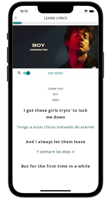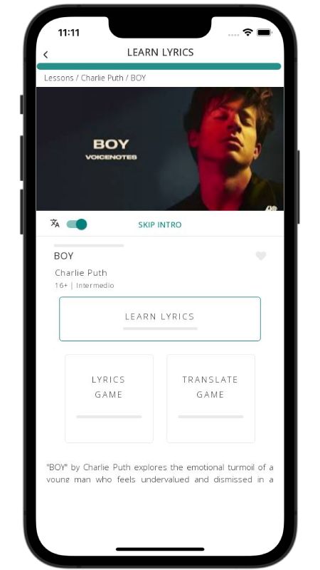 In addition to reading lyric translations, you can now learn English with music and lyrics from your favorite artists.