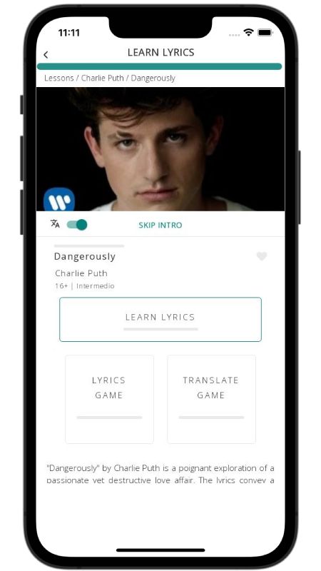 In addition to reading lyric translations, you can now learn English with music and lyrics from your favorite artists.