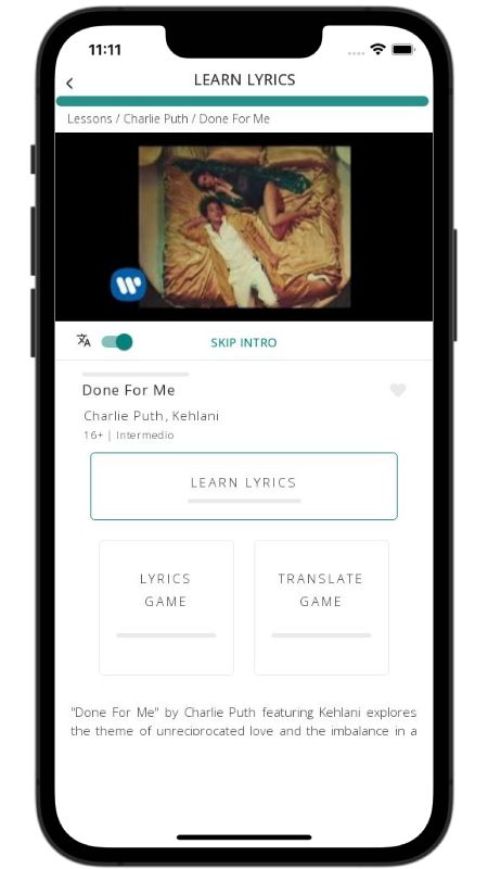 In addition to reading lyric translations, you can now learn English with music and lyrics from your favorite artists.