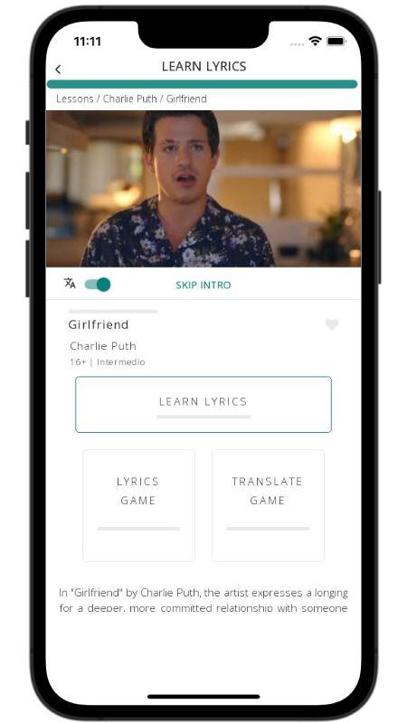 In addition to reading lyric translations, you can now learn English with music and lyrics from your favorite artists.