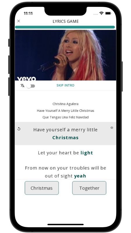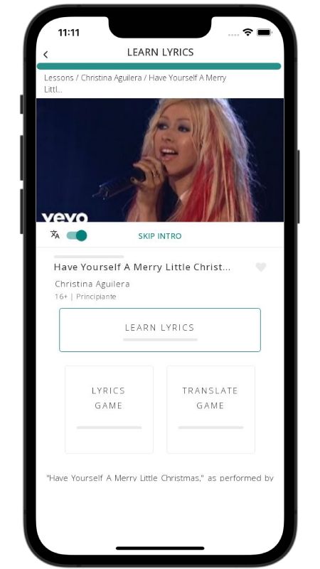 In addition to reading lyric translations, you can now learn English with music and lyrics from your favorite artists.
