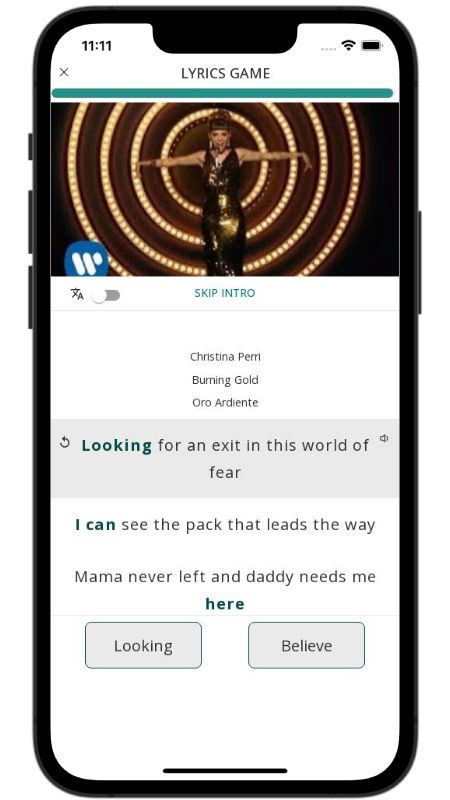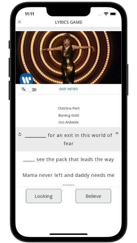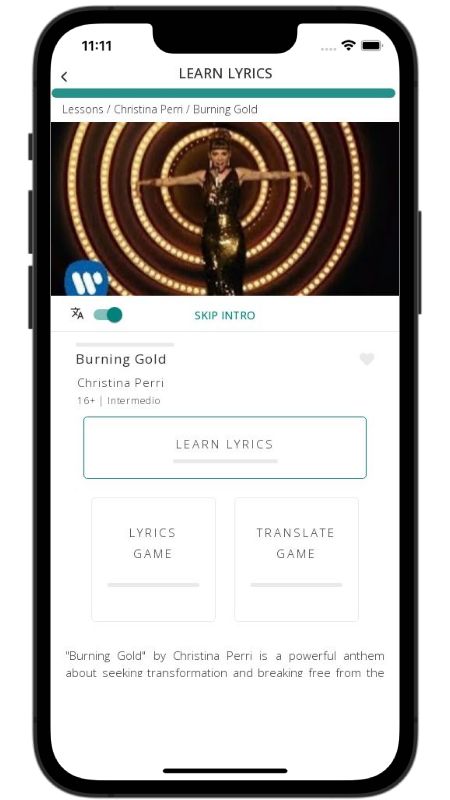 In addition to reading lyric translations, you can now learn English with music and lyrics from your favorite artists.