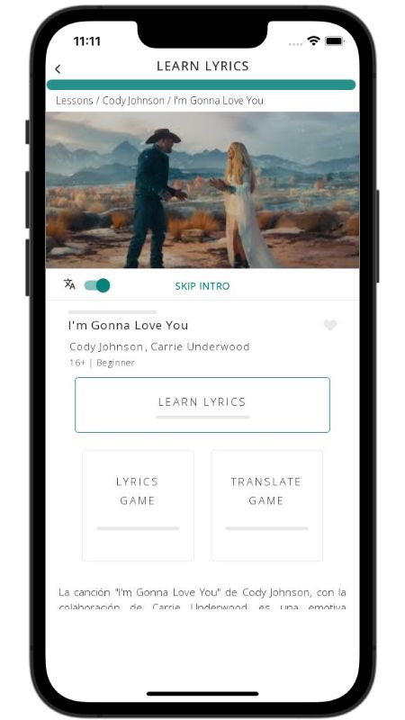 In addition to reading lyric translations, you can now learn English with music and lyrics from your favorite artists.