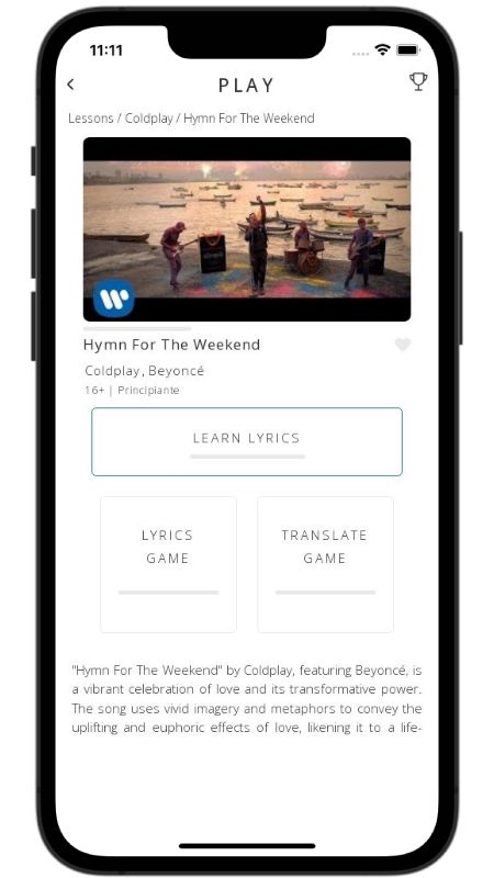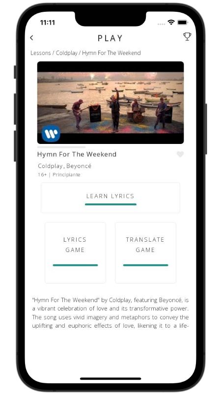 In addition to reading lyric translations, you can now learn English with music and lyrics from your favorite artists.