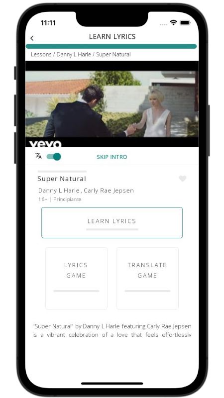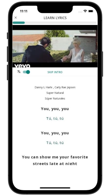 In addition to reading lyric translations, you can now learn English with music and lyrics from your favorite artists.