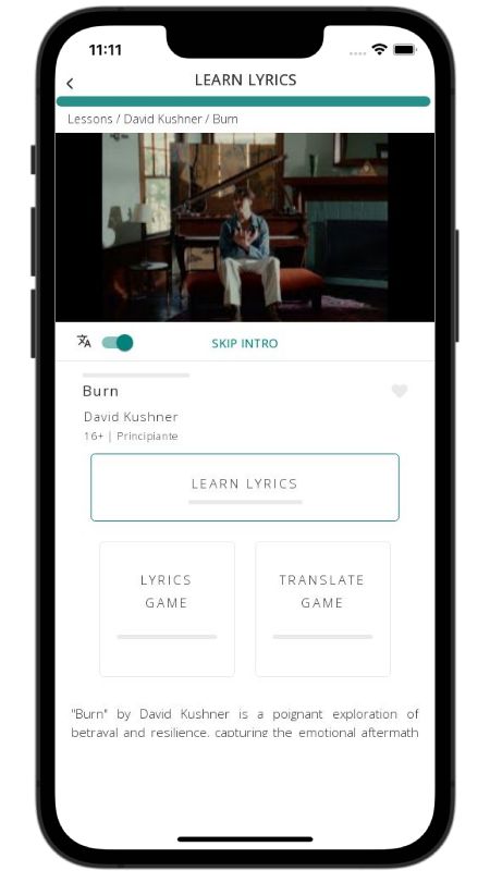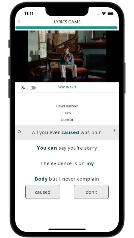 In addition to reading lyric translations, you can now learn English with music and lyrics from your favorite artists.