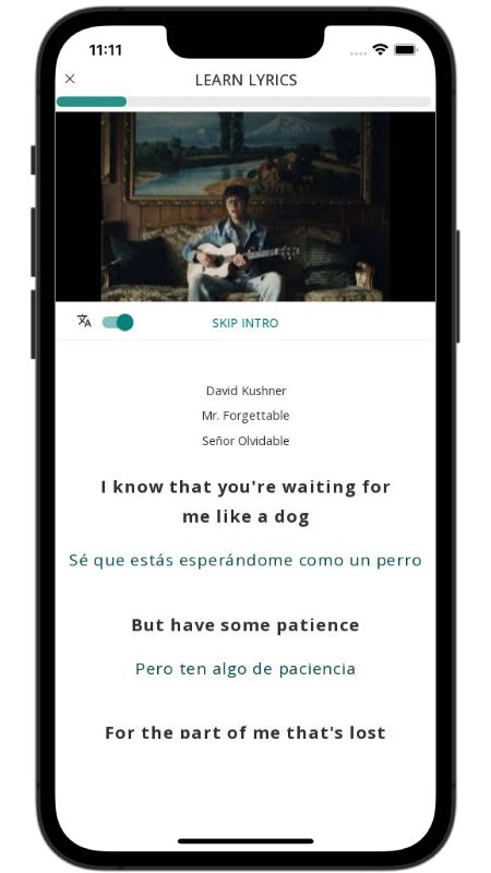 In addition to reading lyric translations, you can now learn English with music and lyrics from your favorite artists.