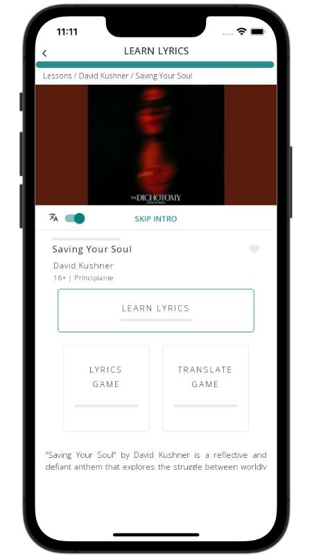 In addition to reading lyric translations, you can now learn English with music and lyrics from your favorite artists.