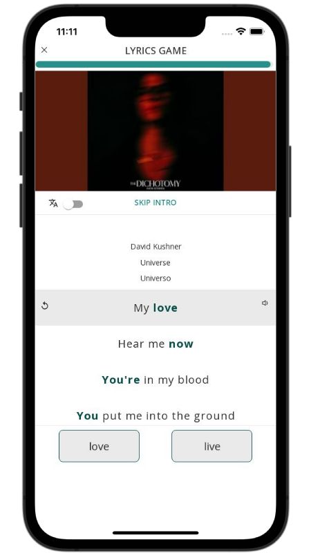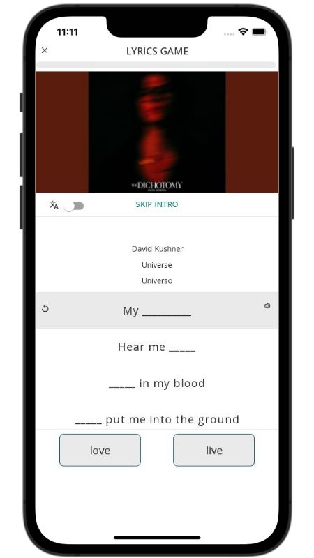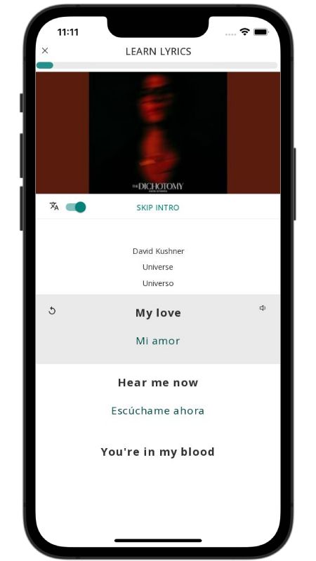 In addition to reading lyric translations, you can now learn English with music and lyrics from your favorite artists.