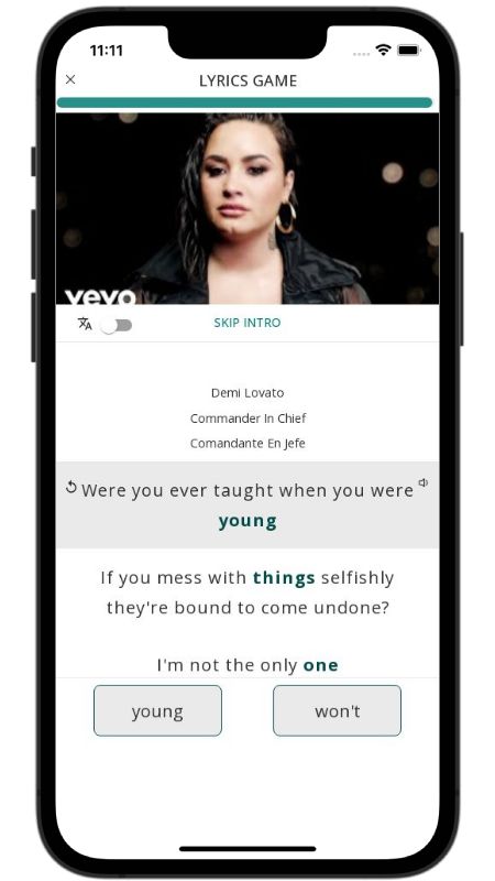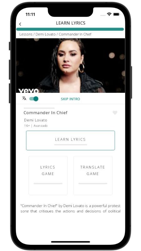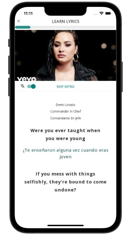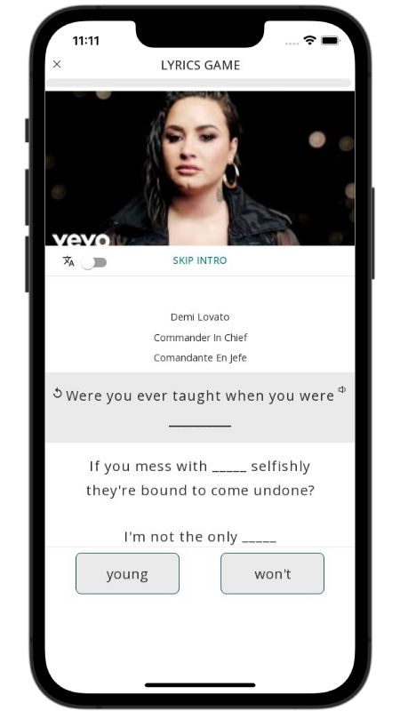 In addition to reading lyric translations, you can now learn English with music and lyrics from your favorite artists.