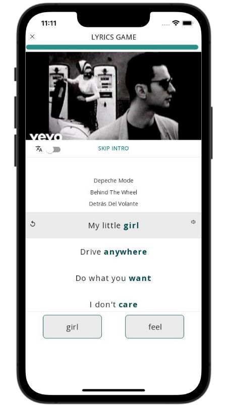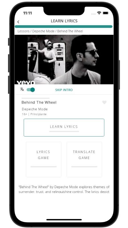 In addition to reading lyric translations, you can now learn English with music and lyrics from your favorite artists.