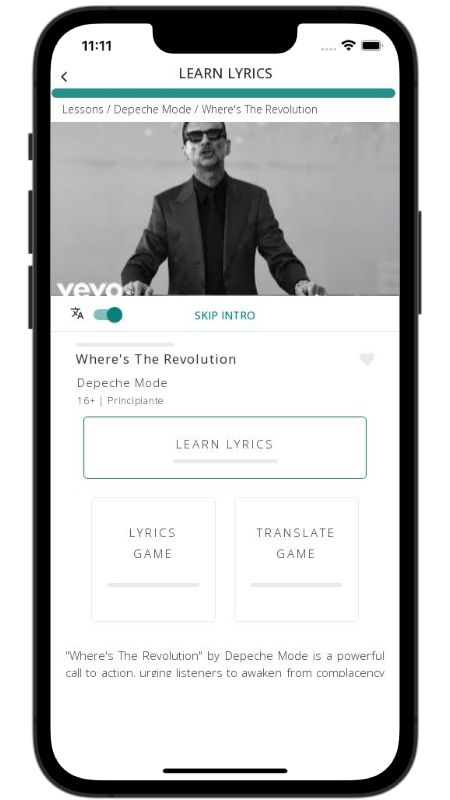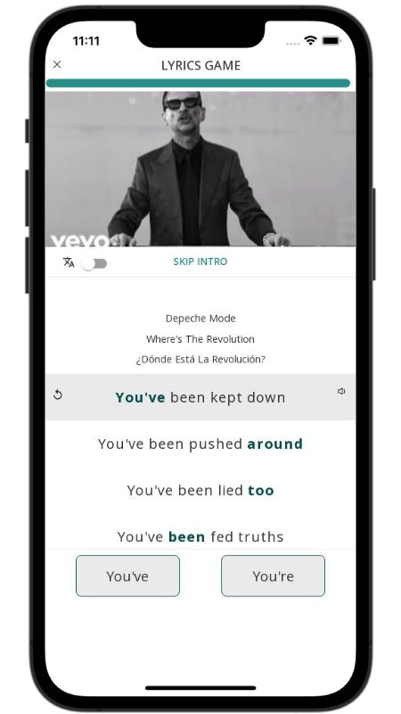 In addition to reading lyric translations, you can now learn English with music and lyrics from your favorite artists.