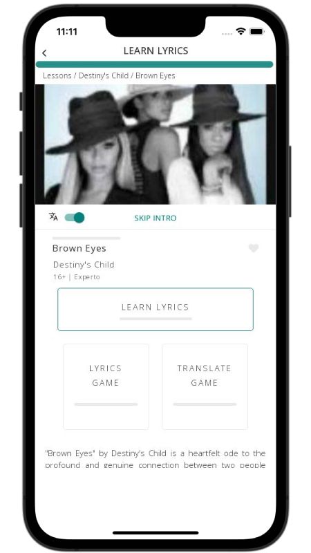 In addition to reading lyric translations, you can now learn English with music and lyrics from your favorite artists.