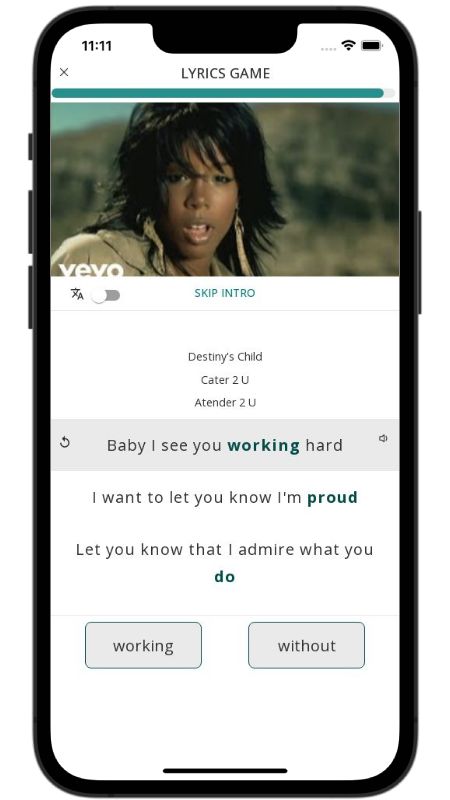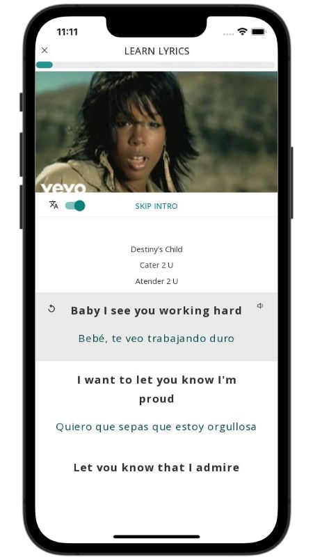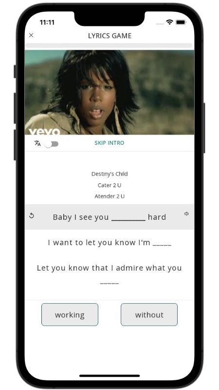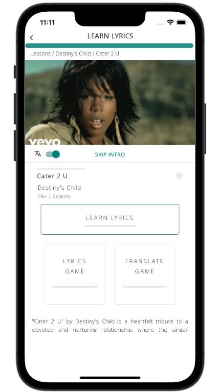 In addition to reading lyric translations, you can now learn English with music and lyrics from your favorite artists.