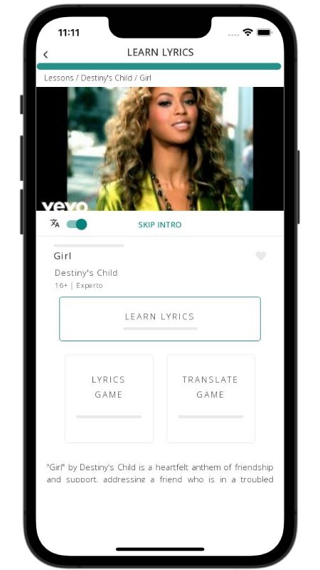 In addition to reading lyric translations, you can now learn English with music and lyrics from your favorite artists.