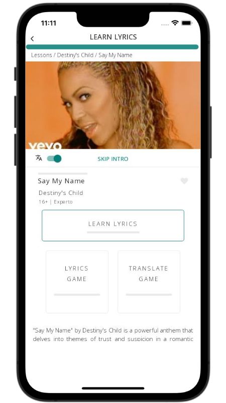 In addition to reading lyric translations, you can now learn English with music and lyrics from your favorite artists.