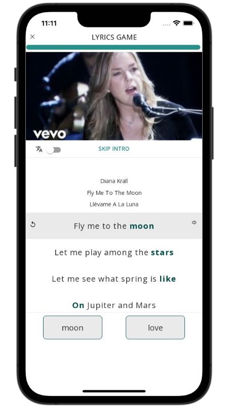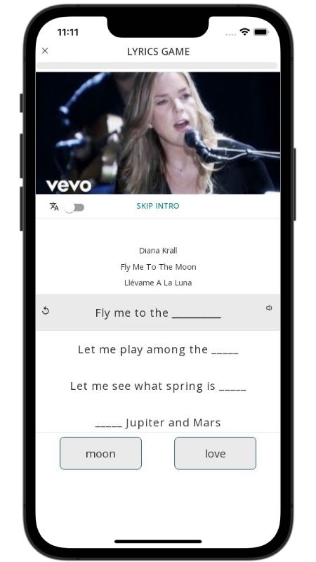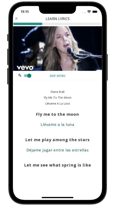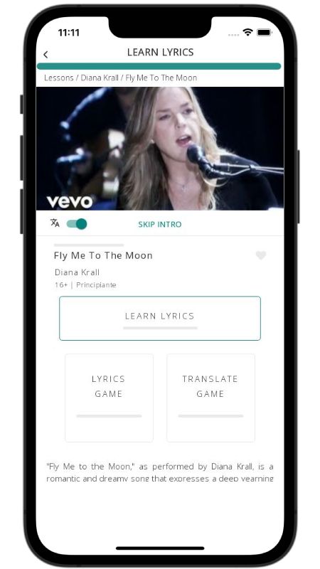 In addition to reading lyric translations, you can now learn English with music and lyrics from your favorite artists.