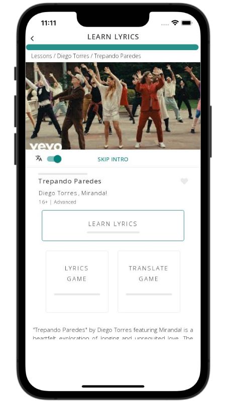 In addition to reading lyric translations, you can now learn Spanish with music and lyrics from your favorite artists.