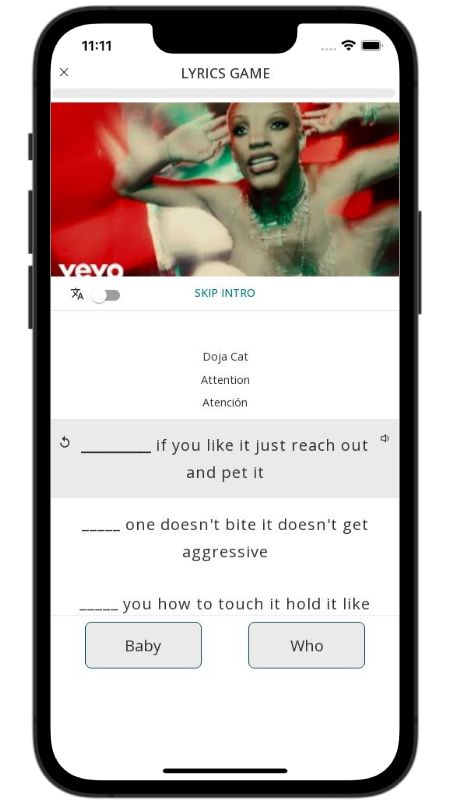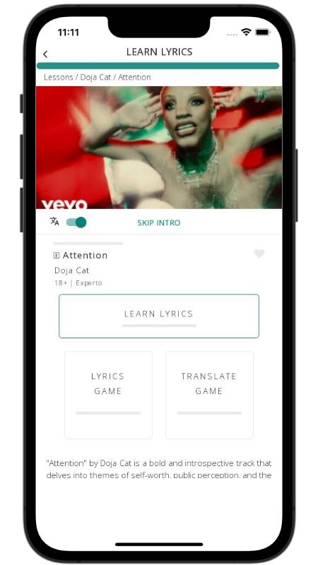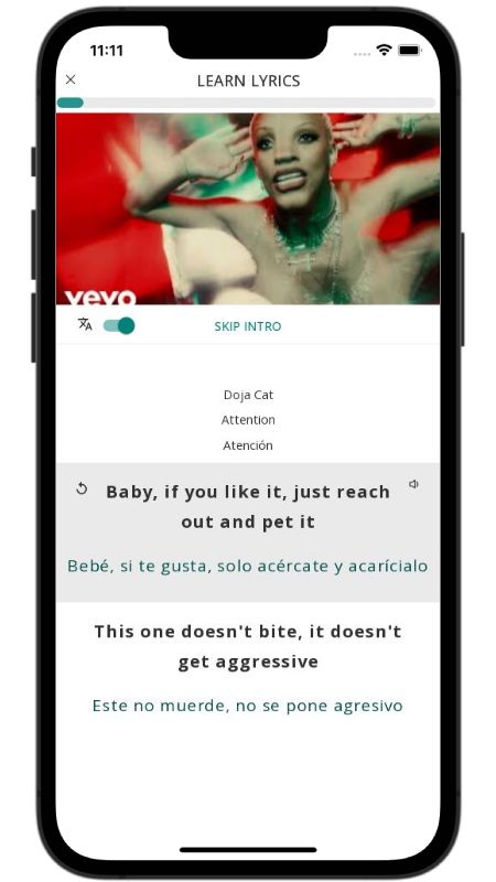 In addition to reading lyric translations, you can now learn English with music and lyrics from your favorite artists.
