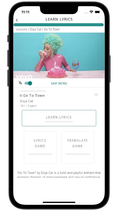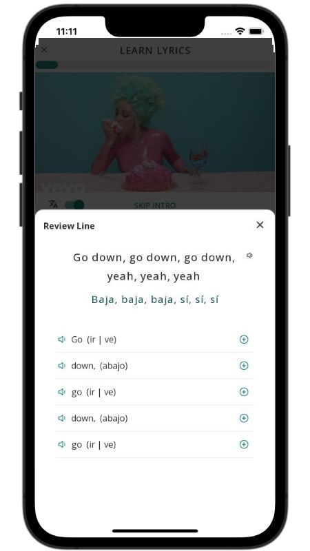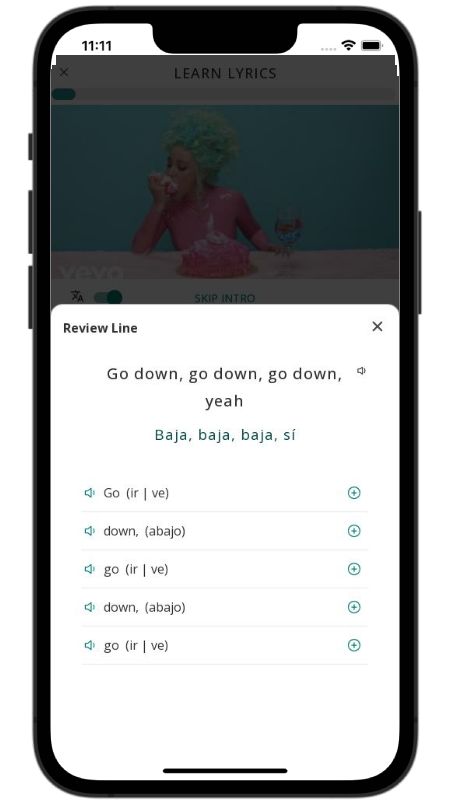 In addition to reading lyric translations, you can now learn English with music and lyrics from your favorite artists.