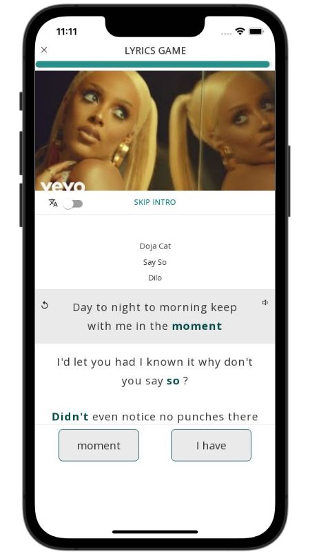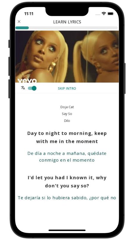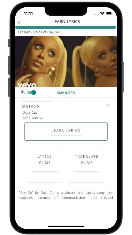 In addition to reading lyric translations, you can now learn English with music and lyrics from your favorite artists.