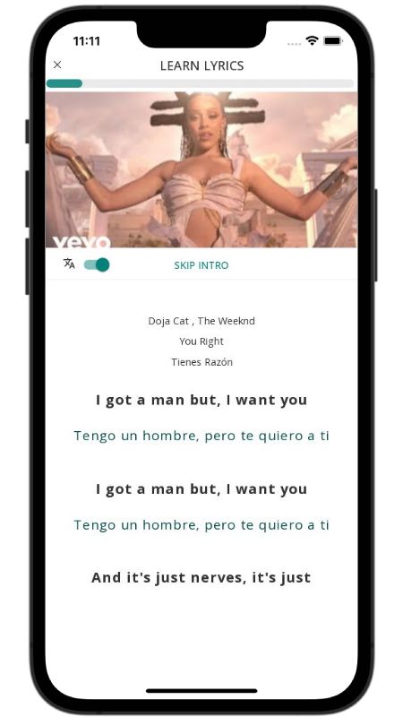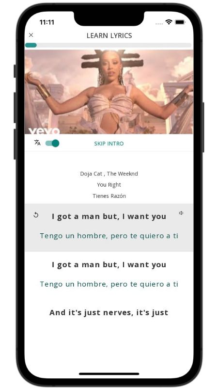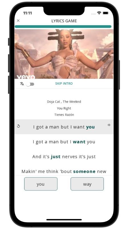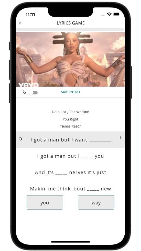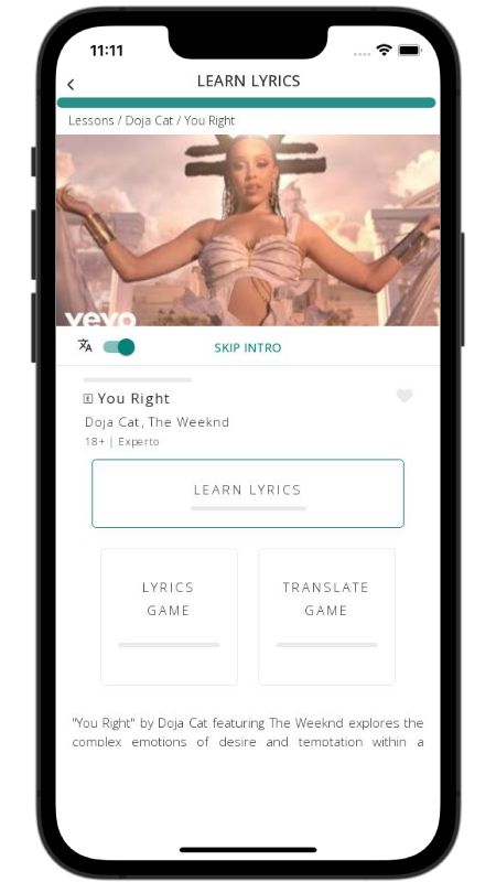 In addition to reading lyric translations, you can now learn English with music and lyrics from your favorite artists.