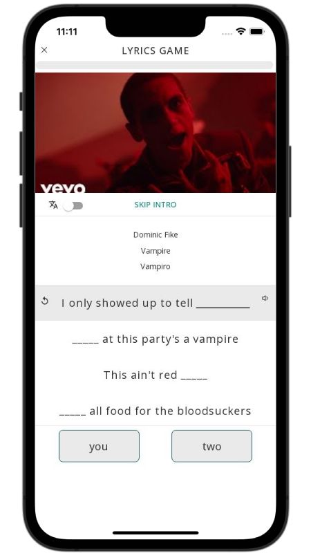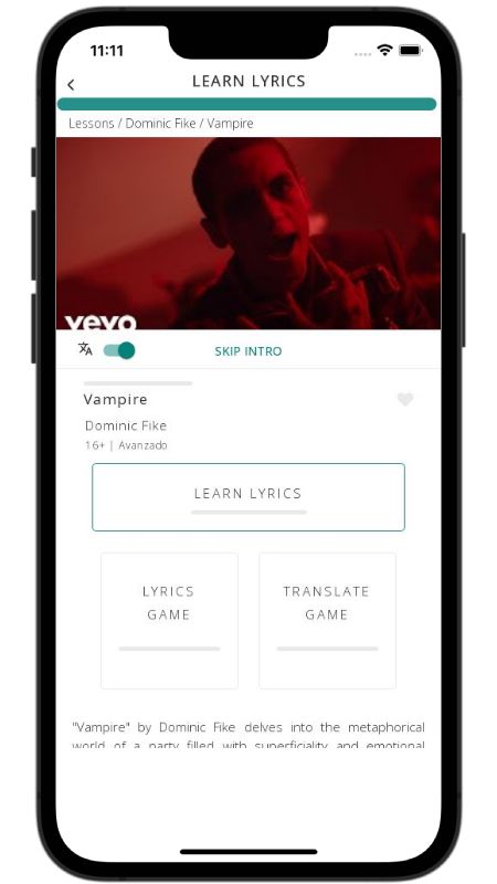 In addition to reading lyric translations, you can now learn English with music and lyrics from your favorite artists.