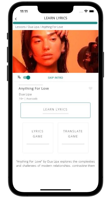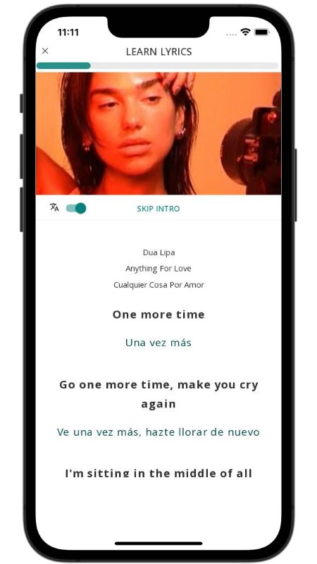In addition to reading lyric translations, you can now learn English with music and lyrics from your favorite artists.