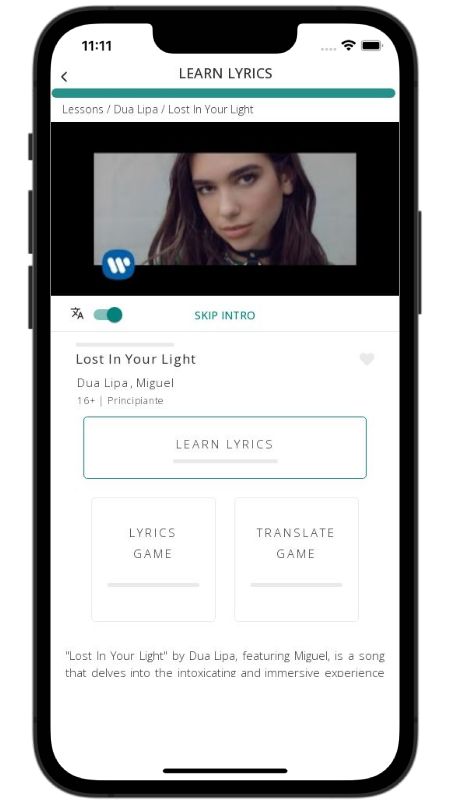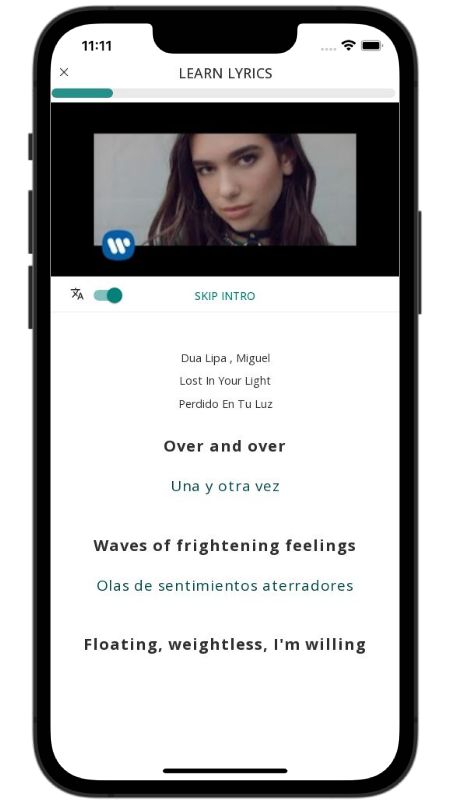 In addition to reading lyric translations, you can now learn English with music and lyrics from your favorite artists.