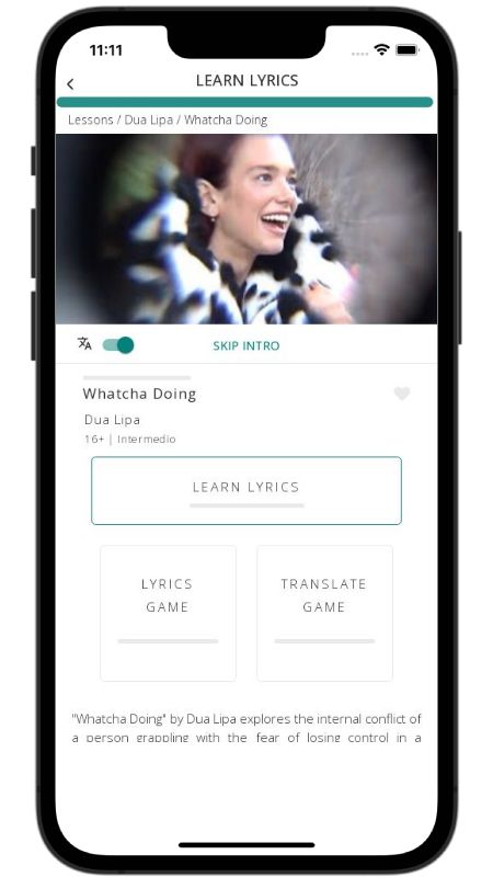 In addition to reading lyric translations, you can now learn English with music and lyrics from your favorite artists.