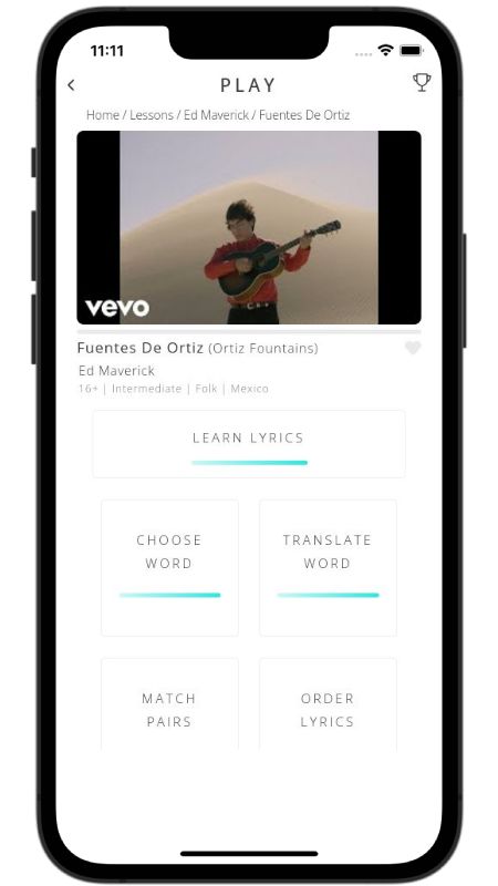 In addition to reading lyric translations, you can now learn Spanish with music and lyrics from your favorite artists.
