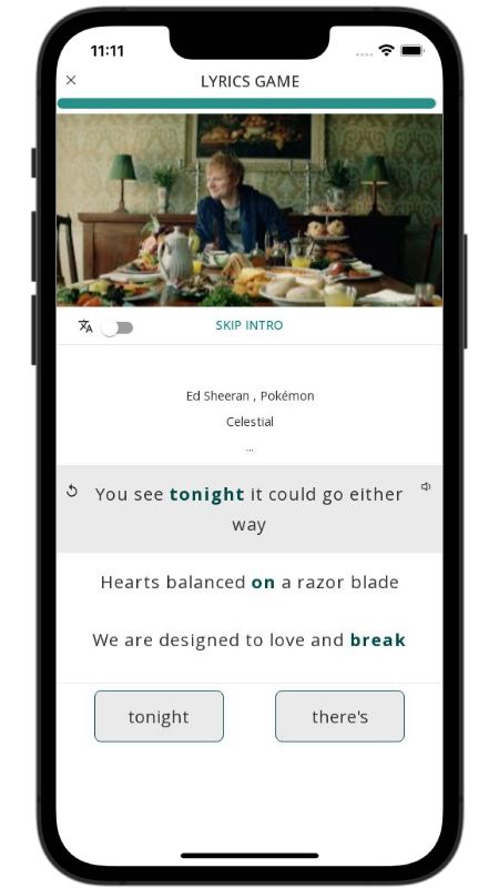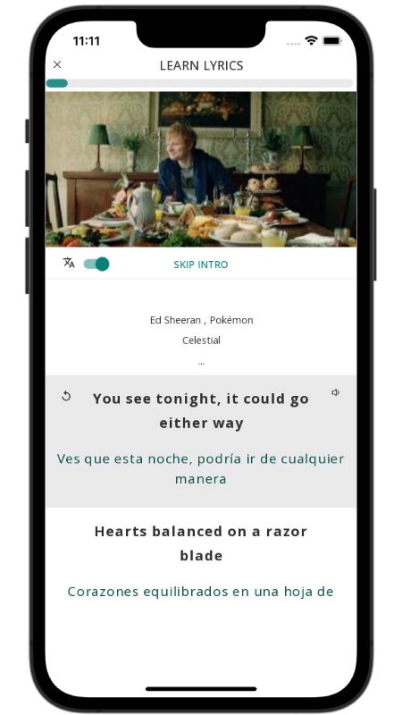 In addition to reading lyric translations, you can now learn English with music and lyrics from your favorite artists.