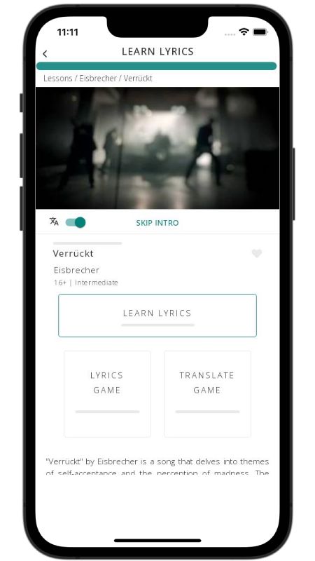 In addition to reading lyric translations, you can now learn German with music and lyrics from your favorite artists.