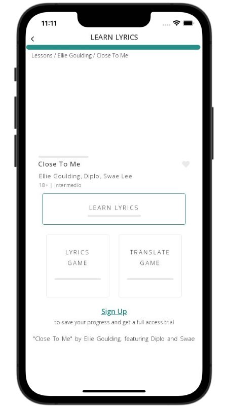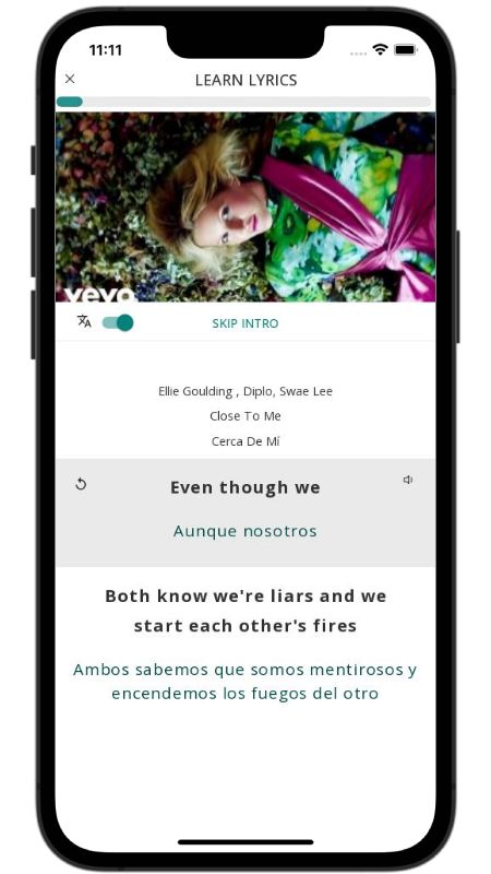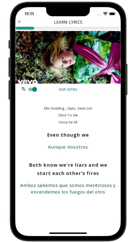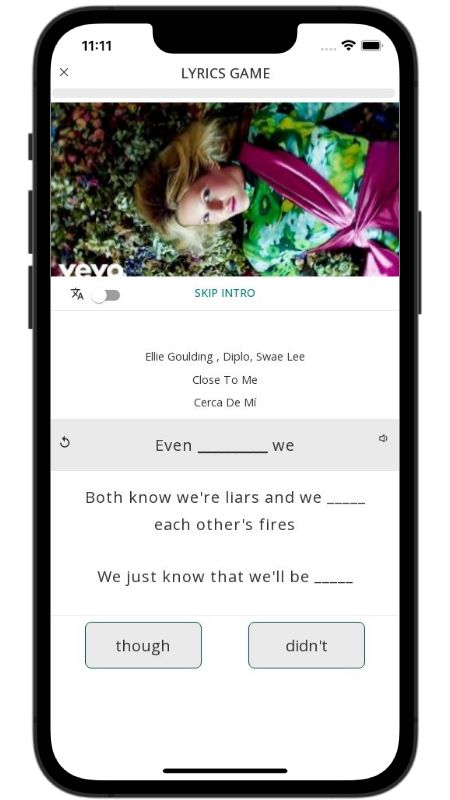 In addition to reading lyric translations, you can now learn English with music and lyrics from your favorite artists.