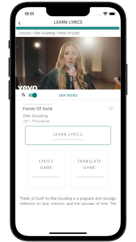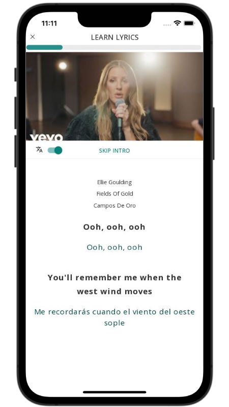 In addition to reading lyric translations, you can now learn English with music and lyrics from your favorite artists.