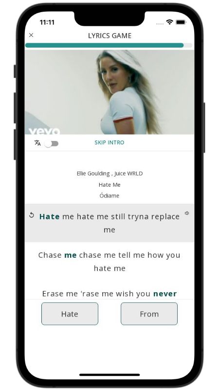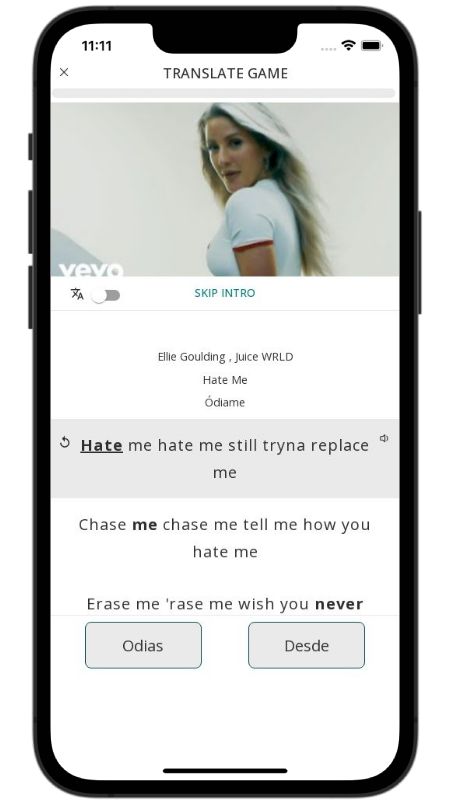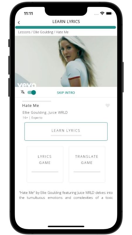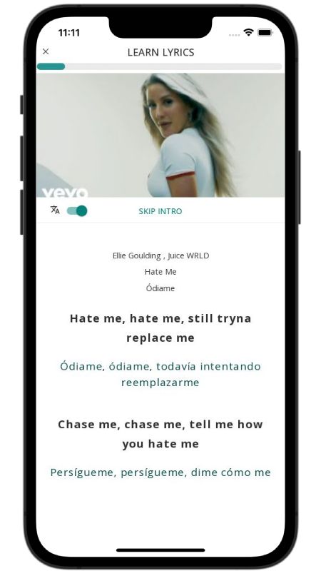 In addition to reading lyric translations, you can now learn English with music and lyrics from your favorite artists.