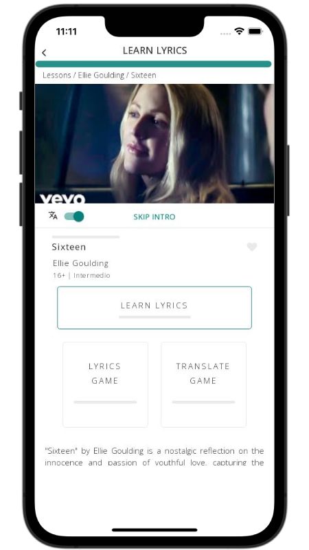 In addition to reading lyric translations, you can now learn English with music and lyrics from your favorite artists.