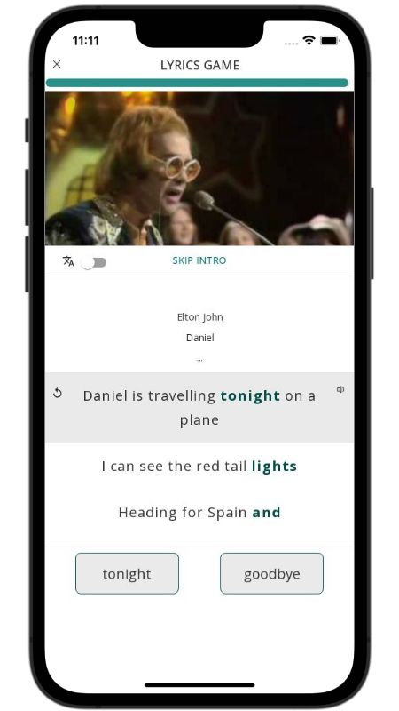In addition to reading lyric translations, you can now learn English with music and lyrics from your favorite artists.