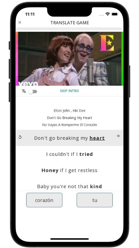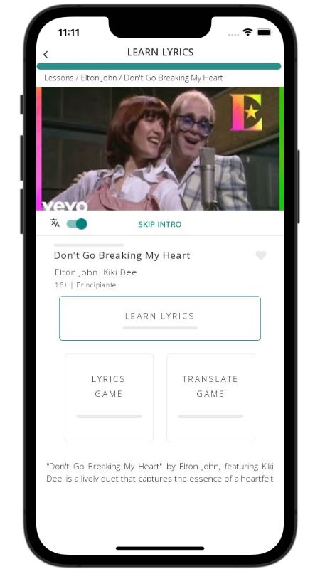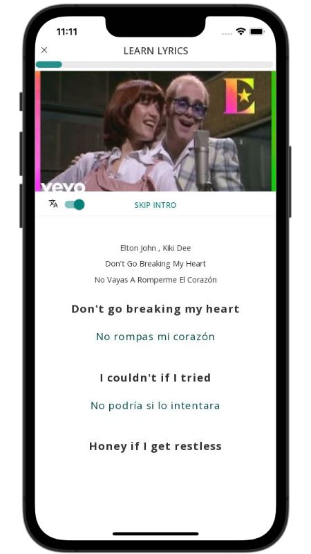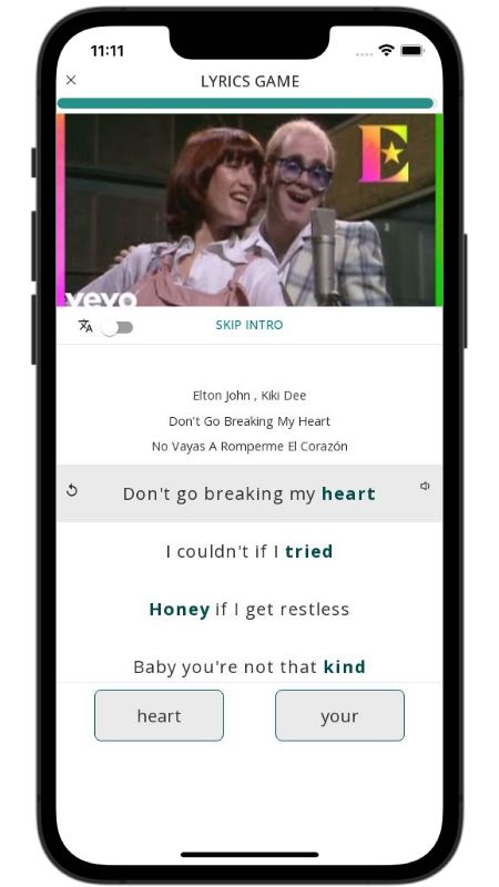 In addition to reading lyric translations, you can now learn English with music and lyrics from your favorite artists.