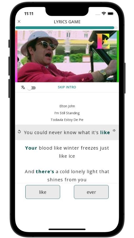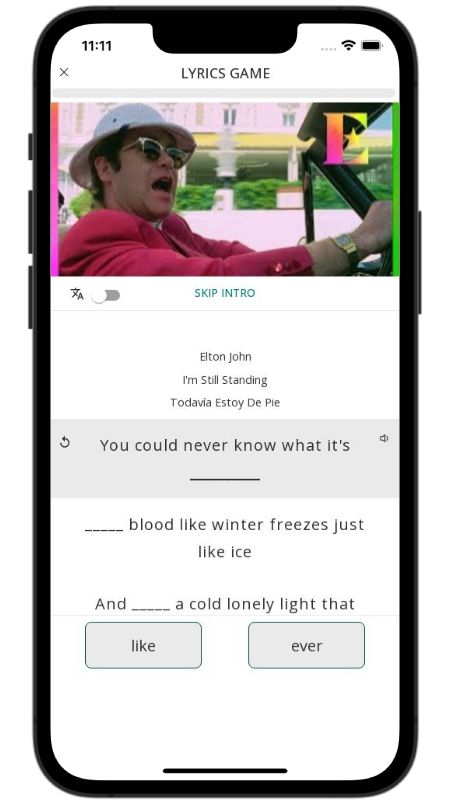 In addition to reading lyric translations, you can now learn English with music and lyrics from your favorite artists.