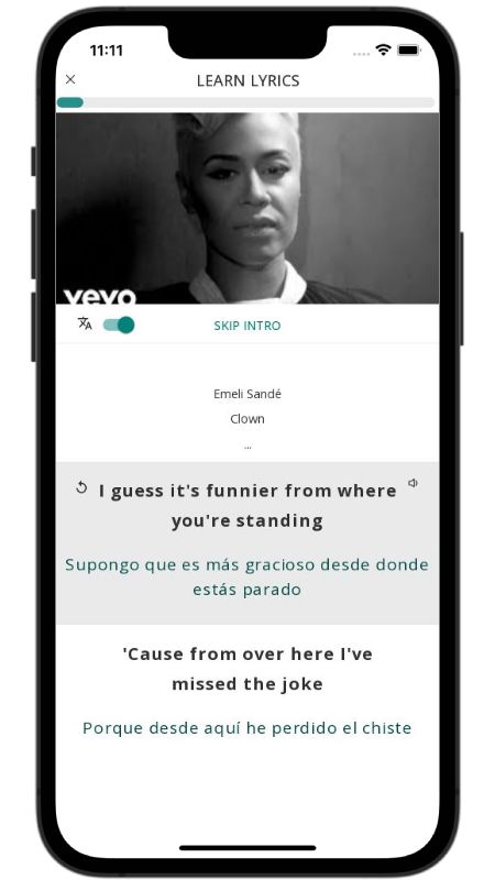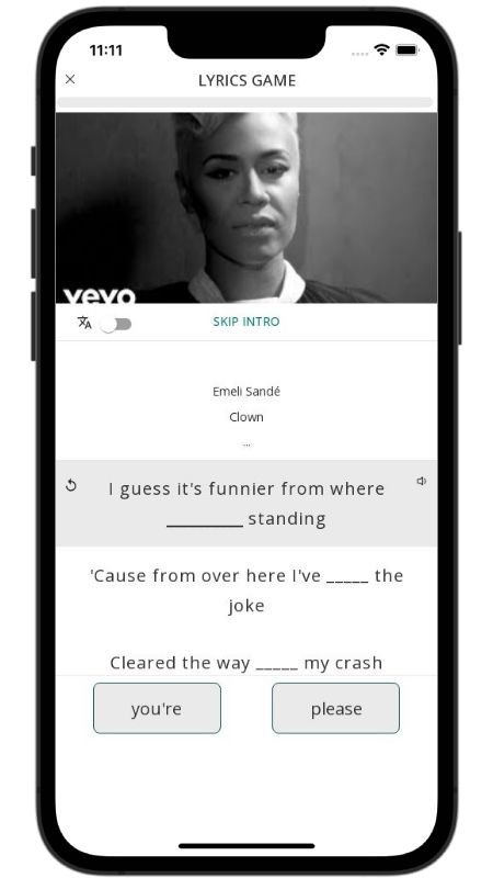 In addition to reading lyric translations, you can now learn English with music and lyrics from your favorite artists.