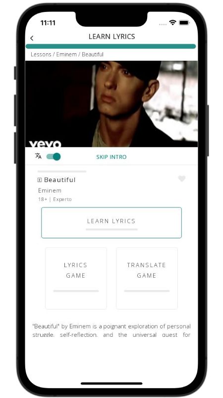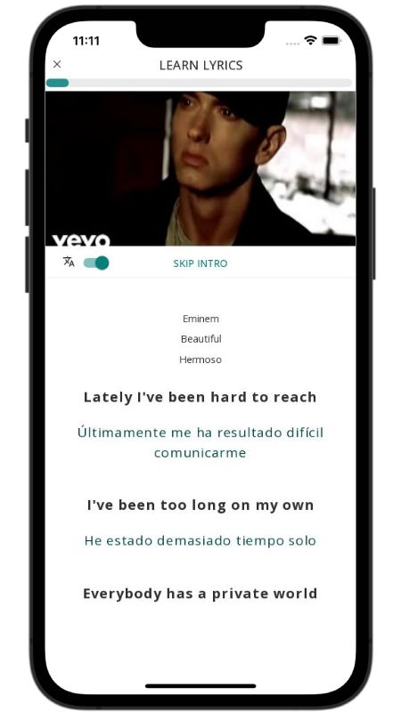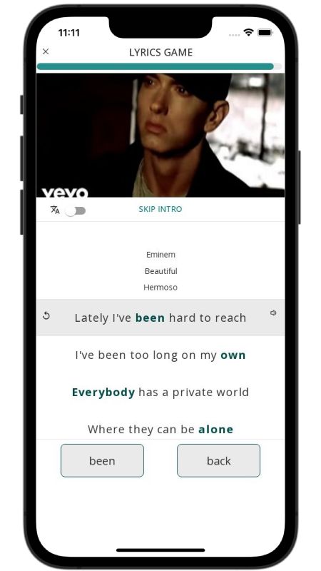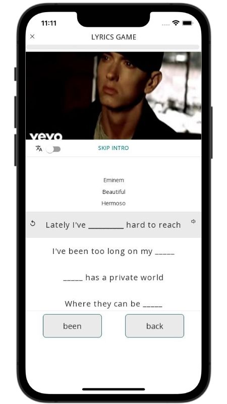In addition to reading lyric translations, you can now learn English with music and lyrics from your favorite artists.